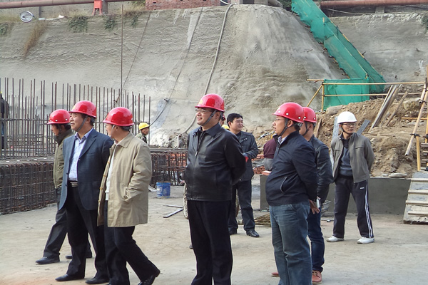 秦西社主席一行深入施工現(xiàn)場實地考察,詳細(xì)了解工程進展情況和現(xiàn)場運行狀況,隨后聽取了第一工程公司負(fù)責(zé)人袁建飛、項目經(jīng)理呂紅輝就項目生產(chǎn)等方面的情況匯報。